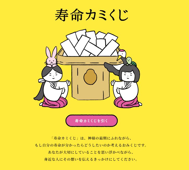 『寿命カミくじ』は、自分の価値観を考え、大切な人に伝えるきっかけとなるくじ引きです。
